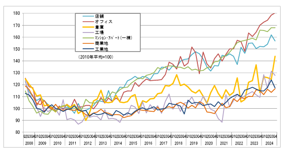 国土交通省<不動産価格指数(商業用不動産)(令和6年第4四半期分・季節調整値)>より